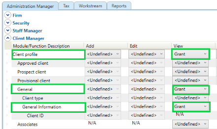 Firm administrators can grant or deny staff members access to perform the following actions in the application: